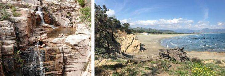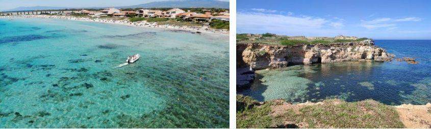 W obie strony pieszo z głównej plaży może powędrować dużo dalej, na panoramiczne wysokie klify Su Tingiosu,, za którymi ciągną sie słynne kwarcowe plaże, w druga stronę na cypel z latarnią Capo Mannu, pod którym ukryte są małe dzikie zatoczki, super miejsca na spokojne plażowanie nawet w szczycie sezonu.